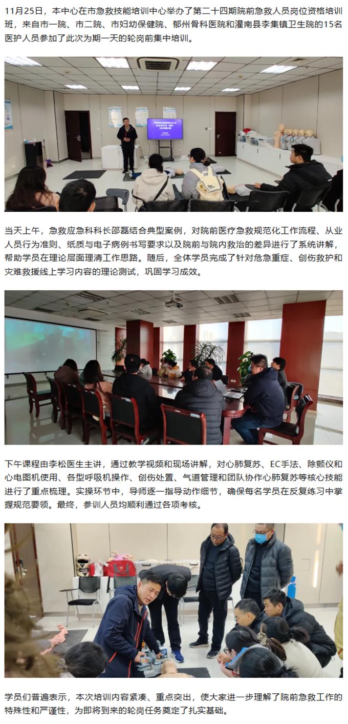 理论筑底,实操赋能,院前急救人员岗位资格培训有序推进
