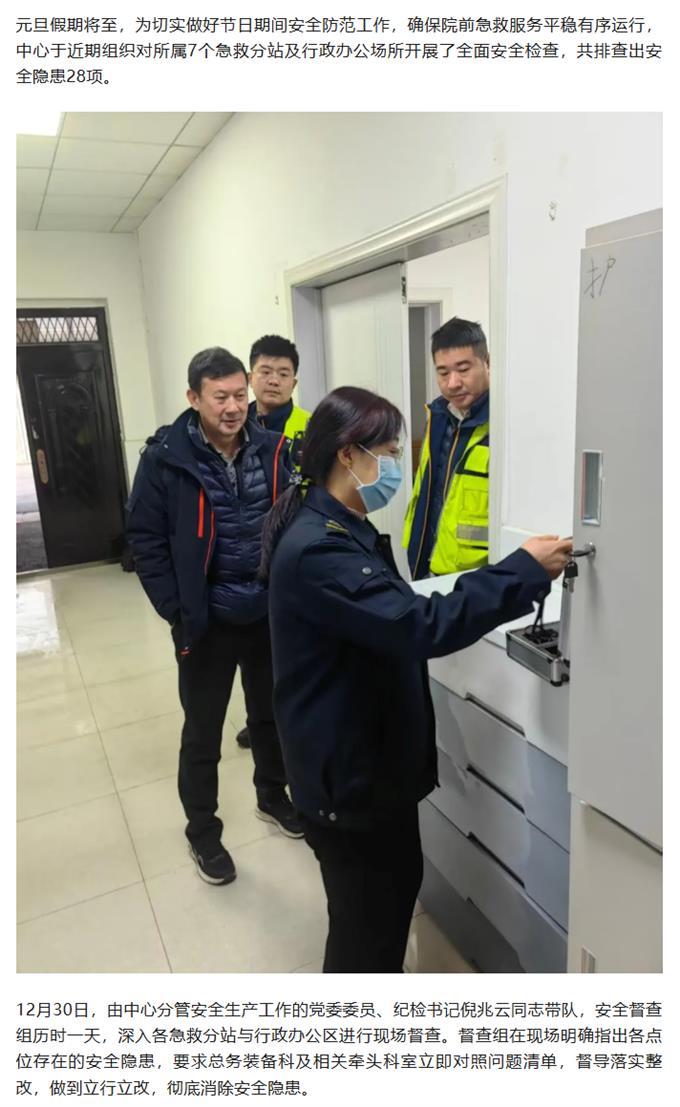 中心开展元旦前安全督查,筑牢院前急救安全防线