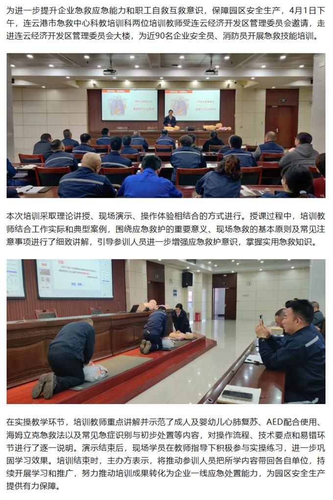市急救中心走进连云经济开发区,急救技能送进企业一线,助力安全生产能力提升