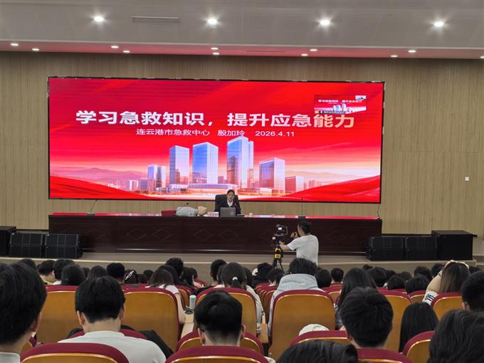 为切实提升省运会志愿者应急处置能力,筑牢赛事安全保障防线,确保省运会各项赛事活动安全、有序开展,2026年4月11日下午,在团市委统战部的邀请下,连云港市急救中心科教培训科殷加玲讲师走进市体育学校,为现场500余名省运会志愿者开展急救知识与技能专项培训讲座,同时开通线上直播通道,1600余名线上志愿者同步观看学习,实现线上线下全覆盖、全方位的急救科普赋能。