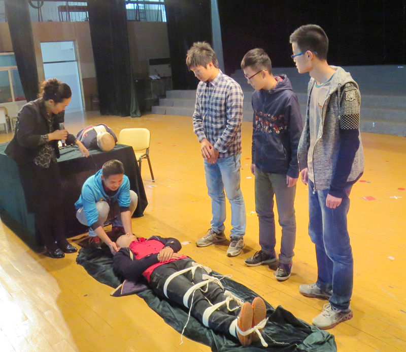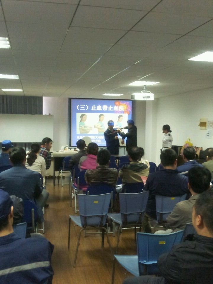 培训导师以口头讲解和实际操作相结合的方式,深入浅出地讲授了日常生活急救常识和技能,如:心肺复苏术、创伤四项基本技术、气道异物处理、烧烫伤处理、复原卧位的翻转等等。