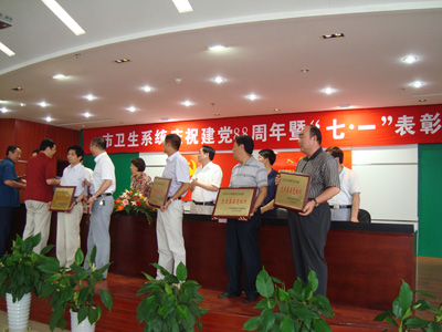 我中心在2009年市卫生系统庆祝建党88周年暨“七一”表彰大会上荣获先进基层党组织称号,中心书记王明祥在会上做了交流发言,博得参会人员的热烈掌声。