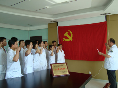 2009年7月1日上午,在中国共产党建党88周年之际,市急救中心的20名党员佩戴党徽,高举右拳在王明祥书记的带领下面对党旗庄严宣誓:“我志愿加入中国共产党……永不叛党。”