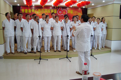 2009年正值祖国60华诞,我中心利用这契机,于9月27日下午举行了一场“市急救中心庆祝祖国60华诞歌咏比赛”,弘扬了民族正气,高唱了时代主旋律,对全体职工进行了一次爱国主义教育。