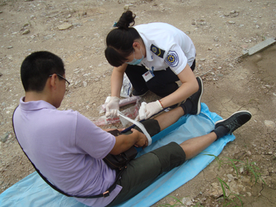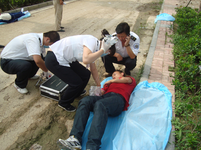 此次演习是模拟真实突发事件,以市区某建筑工地发生坍塌造成20名工人不同程度受伤事件为背景。120接警后迅速启动应急预案,先后调派了6辆救护车赶赴现场,并组织4辆救护车紧急待命。急救人员到达现场后迅速展开检伤分类和现场救护,确认有1人当场死亡,5人重伤,14人轻伤,应急处置后立即进行病员分流转运,送往各家医院。整个预演持续1个多小时,参加人员43人,出动车辆10台次,急救人员在救护过程中分秒必争、有条不紊,整个流程紧张而有序,取得了良好的成果。预演结束后,演练考核小组对接警、应急响应、现场处理、后送、交接等环节进行了评估和分析。