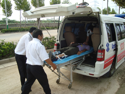 “XX建筑工地发生工房倒塌事故,造成大批量人员受伤,请赶快派车救援……”连云港市120急救中心接警后迅速调派10辆救护车赶往事发地点展开有条不紊地急救处理。这是8月6日下午14时30分发生在连云港市区某建筑工地上紧张而有序的一幕。