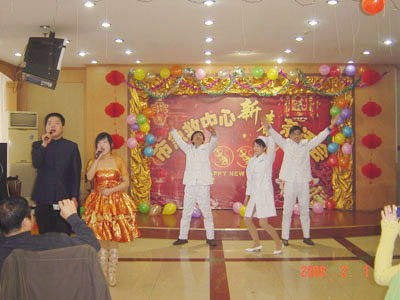 2月1日下午,市急救中心喜迎2008,在永和大酒店举办迎新春联欢晚会。各科室载歌载舞,内容精彩纷呈,整台晚会集朗诵、歌舞、表演、游戏于一体,洋溢着欢声笑语。节目接近尾声,颁发了扑克、象棋等奖项。晚间中心宴请全体职工,共同举杯迎接新春的到来。