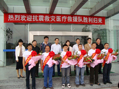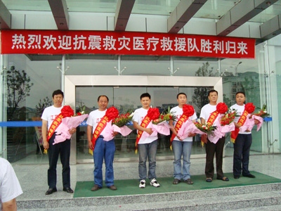 连云港市急救中心救援队是我市组织的第一支赶赴灾区的救护队,在四川地震灾区配合其他救援人员完成了三个阶段的工作,即:转运伤员、长途转送伤员及配合防疫人员做好防疫工作。全省调派的50辆救护车,分两批返程,我中心3辆救护车被安排在第一批从四川什邡出发,昨天上午救援队回到家乡,在市急救中心,救援队员受到卫生系统领导和同事们的热烈欢迎。