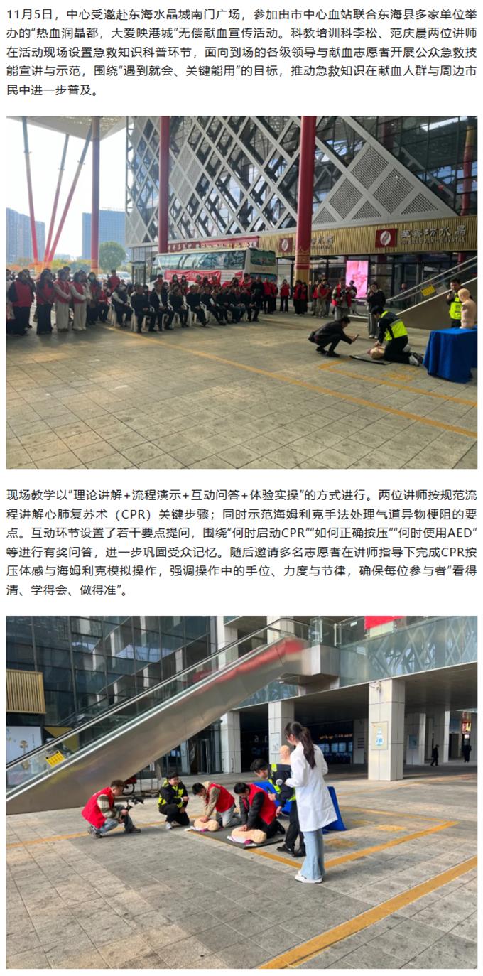 热血润晶都,急救进广场,中心开展急救技能科普公益活动