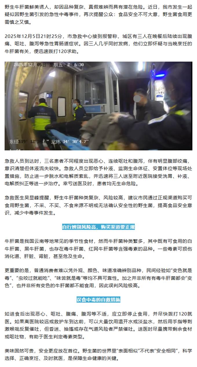 三人同现急性不适,疑似野生菌中毒,急救及时化险为夷