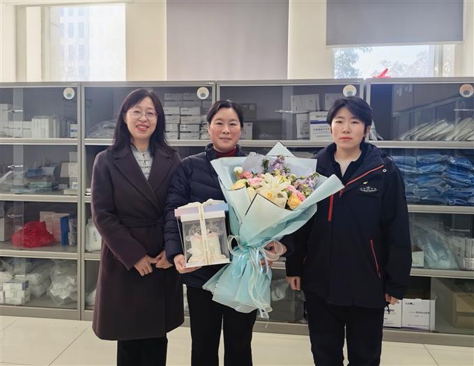 在药房,慰问组向坚守岗位的女职工致以节日问候。作为药品管理和发放的“守门人”,她们用严谨细致的工作态度确保用药安全。一束束芬芳的鲜花,一声声亲切的问候,让药房内洋溢着温馨的节日氛围。