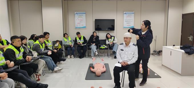 本次培训采取理论讲授、现场示范、分组练习相结合的方式进行。授课过程中,培训教师结合实际案例和一线经验,围绕应急救护的重要意义、基本原则和操作要点进行了细致讲解,帮助参训人员进一步加深对急救知识的理解。实操教学环节中,教师重点讲授并示范了成人及婴幼儿心肺复苏、人工呼吸、止血、包扎、骨折固定等急救理论与施救技巧,对绷带包扎、三角巾包扎、悬吊及夹板固定等操作流程进行了逐项示范。