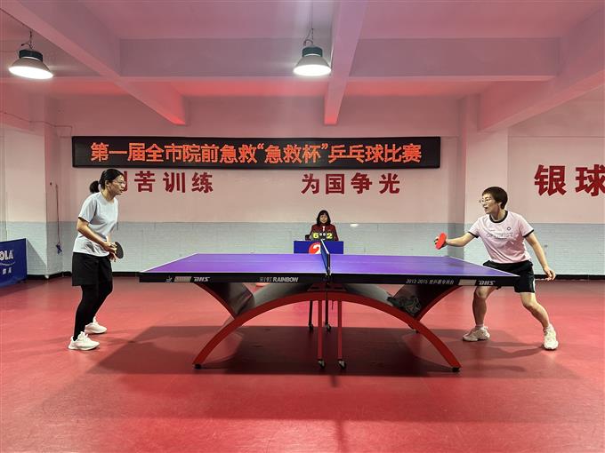 随着比赛正式开始,参赛队员迅速进入状态。发球、接球、扣杀、防守,球台两侧你来我往、精彩不断。赛场上,大家既有激烈比拼,也有相互鼓励;既赛出了水平,也赛出了风格。平日里,急救工作者在救护车上与时间赛跑,在急救现场沉着处置;赛场上,他们同样专注投入、配合默契,用一次次挥拍展现出急救人“分秒必争、永不言弃”的精神风貌。