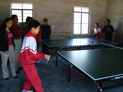市急救中心支部一直非常关注灌云县陡沟乡东元小学学生的学习和生活情况,在过去的捐助中,了解到他们在学习之余,连基本的体育活动设施都没有,为了增强学生们的体质,丰富学生们的生活,中心特地赶在六一来临之前为他们购买了乒乓球桌两张,球网、乒乓球、乒乓球拍若干,给他们送去了急救中心职工的关爱,受到学校师生的热烈欢迎。中心人员亲自将这些体育用品运输到学校中,并叮嘱他们认真学习,拼搏奋斗,为了祖国的兴盛而努力。随后,他们立即在一个简陋的教室中将桌子组装,开始了活动。11岁的男同学茆福星非常高兴的说:“我很喜欢打乒乓球,但是过去学校中连水泥台都没有,现在急救中心的叔叔阿姨为我们提供了这么好的条件,我一定会好好学习,锻炼身体,绝不辜负叔叔阿姨的期望,长大后做对社会有贡献的栋梁之才……”